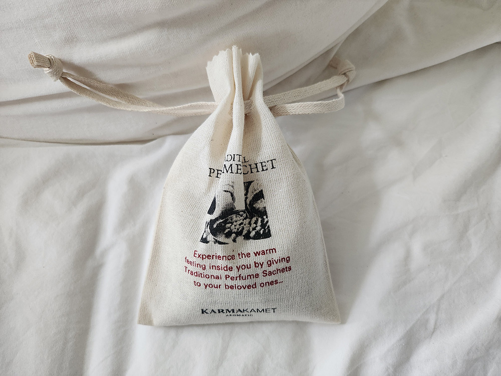 先日手に入れた、タイのKARMA KAMET(カルマカメット)というブランドのパフュームサシェ。「LUANGPRABANG BUDDLEJA」という香りは少しユニークで、花木が広がるような華やかさがありつつも、瞑想しているような安らかな気持ちにもさせてくれる。